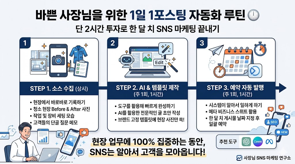 바쁜 사장님을 위한 ‘SNS 1일 1포스팅’ 자동화 루틴 가이드 (2026 최신판)